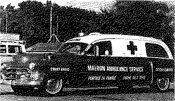 This ambulance is equipped with a two-way radio, oxygen and resuscitator, and gives 24 hour emergency service.