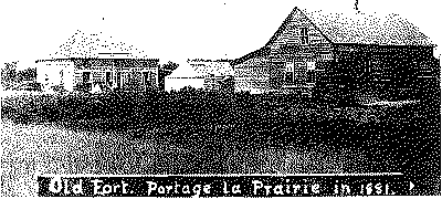 In 1832, "The Old Fort" shown in this picture was established by the Hudson's Bay Company on the north bank of the Assiniboine River approximately 3 miles southwest of the present city of Portage la Prairie.
